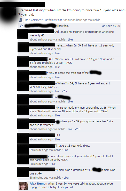We're old.  I'm 38 and K is 44.  Not much we can do about that, we're only going to get older.  I hang out online with a group of 2 dozen mommies from my birth board and this is the conversation I woke up to this morning.